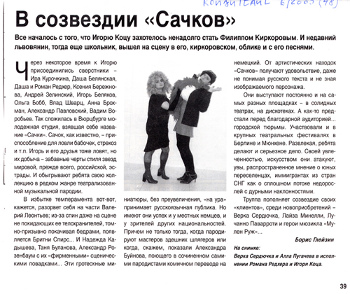 (Zum Vergrößern auf das Bild klicken.) "Konsultant", Juni 2005 Mainpost, 2005 Kontakt, 2008 Krugosor, 2008 "Würzburger Ring", 2008 Mainpost, 2009 "Jugendzeitschrift Cairo", 2007 Theater am Neunerplatz, 2004 Mainpost, 2011 MK Germany, Aug. 2011 Panorama N3, 2012 "Würzburger Ring", 2012 Mainpost, 2012 Kammerton, 2014, Teil 1 Kammerton, 2014, Teil 2 Mainpost, 26.07.2014 Mainpost, 23.06.2014 [NewsRu.nl, 17.08.2011]