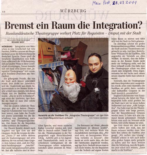 (Zum Vergrößern auf das Bild klicken.) "Konsultant", Juni 2005 Mainpost, 2005 Kontakt, 2008 Krugosor, 2008 "Würzburger Ring", 2008 Mainpost, 2009 "Jugendzeitschrift Cairo", 2007 Theater am Neunerplatz, 2004 Mainpost, 2011 MK Germany, Aug. 2011 Panorama N3, 2012 "Würzburger Ring", 2012 Mainpost, 2012 Kammerton, 2014, Teil 1 Kammerton, 2014, Teil 2 Mainpost, 26.07.2014 Mainpost, 23.06.2014 [NewsRu.nl, 17.08.2011]